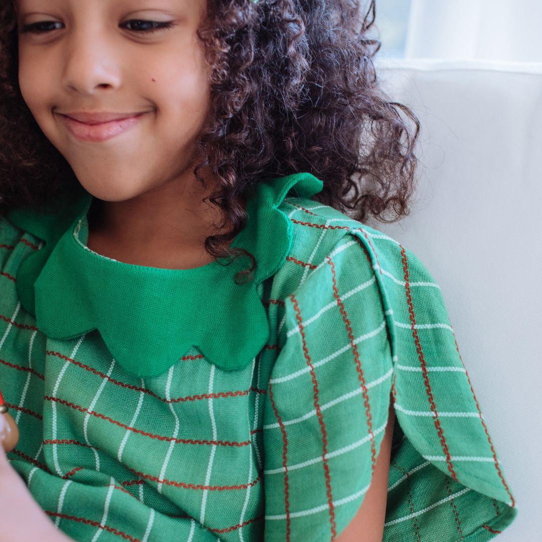 Oh, la la! Our Holiday special edition Mabel dress is the belle of the ball this season. The hand-stitched textile is simply divine, with a scalloped neckline that'll make your heart skip a beat and lotus sleeves that are pure magic. It's the ultimate dress for the festive season, with a silhouette that's perfect for any occasion.