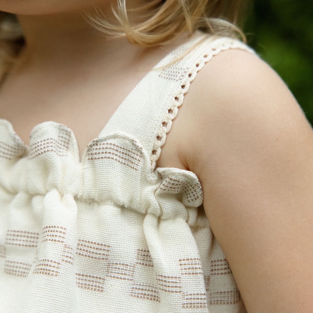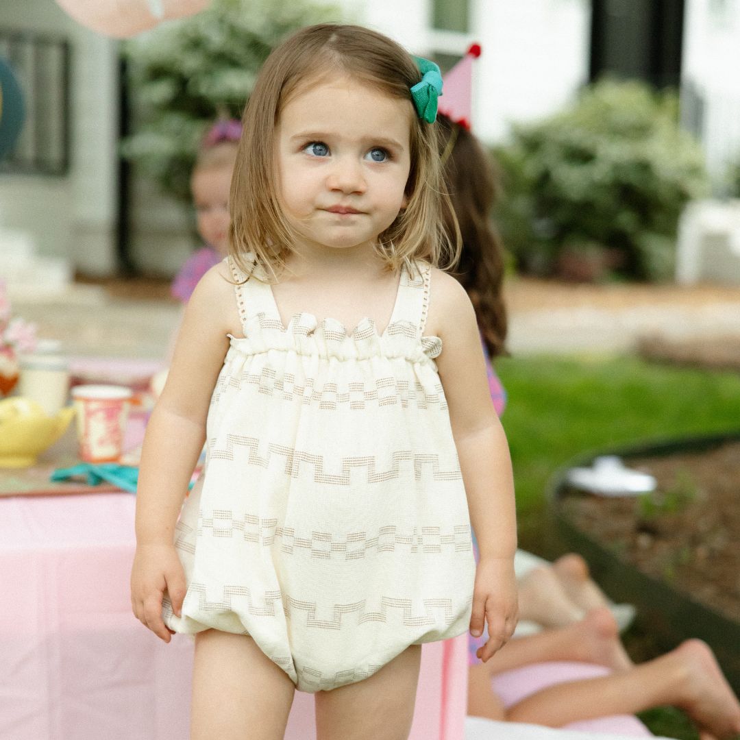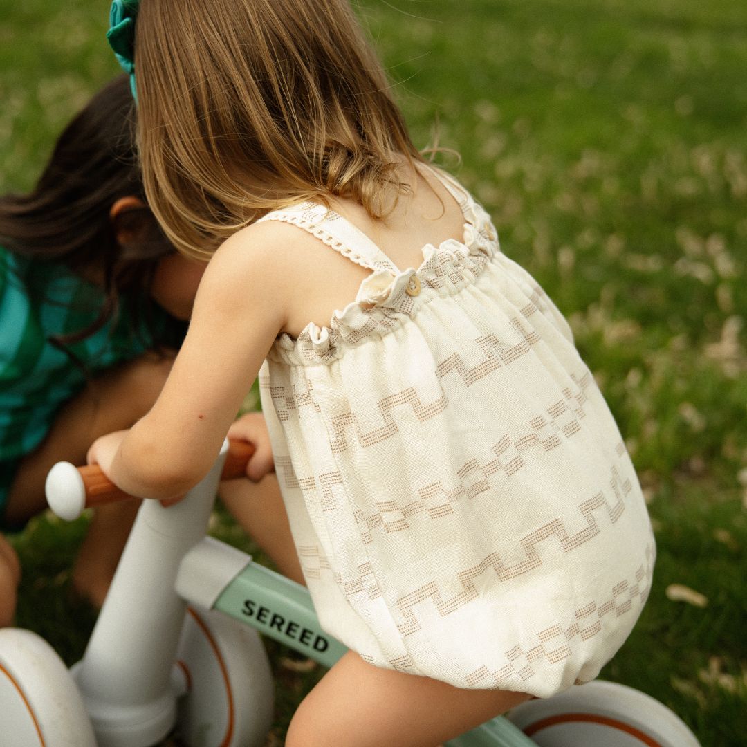 The Rosie bubble is thoughtfully designed for the littlest ones. Made from our elevated 100% cotton textile that looks like linen but feels even softer, it features a roomy bubble silhouette, adjustable straps, and easy button closures for quick changes. Lightweight, breathable, and heirloom-worthy—perfect for sunlit mornings and cozy afternoon nap